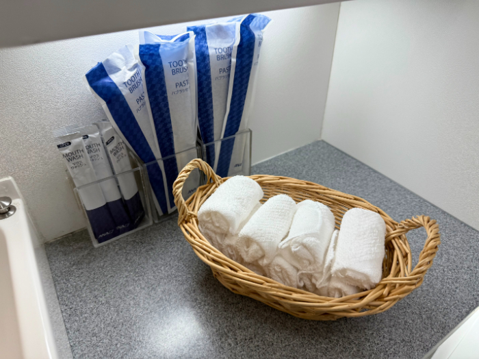 着替えの前にCAさんがお手洗いの掃除・ステップ(足場)の準備をしてくれます。着替えは食後でなく、離陸前でもOKです