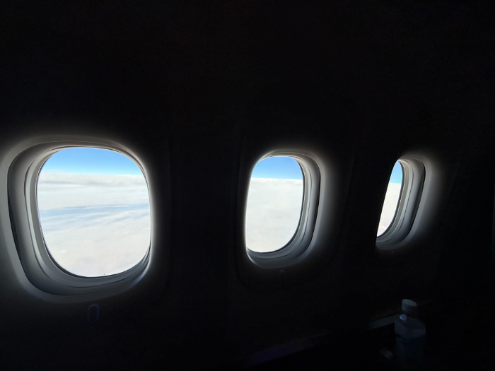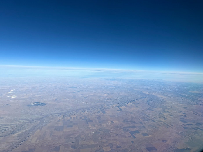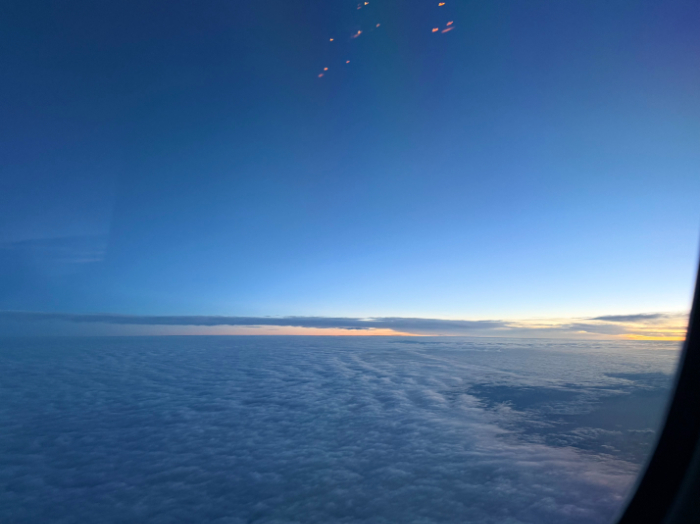 外の景色は明るくなり始め、すでにアメリカ上空を飛行中でした