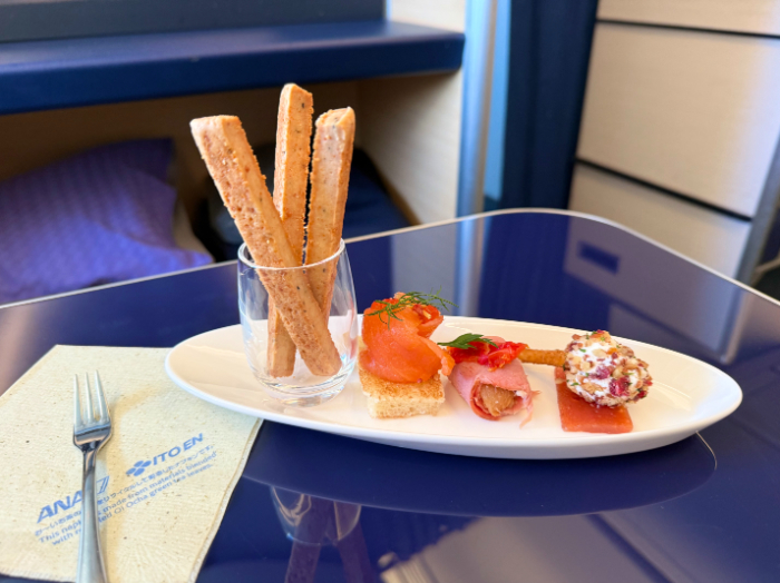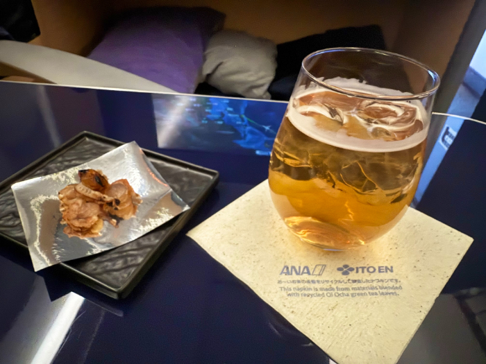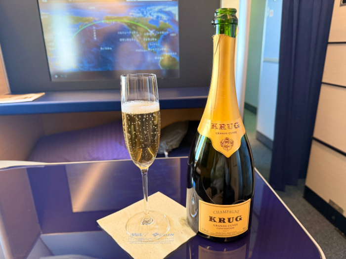 他にクリュッグを飲む人がいないのか、CAさんに勧められて3杯もいただきました!毎回新品を開けているのでしょうか?