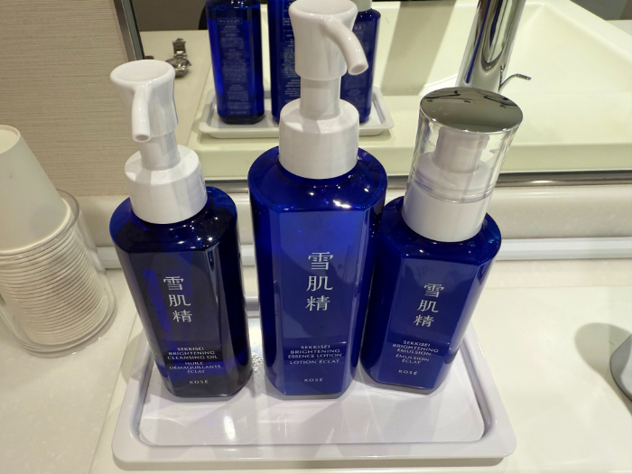 化粧水・乳液などは雪肌精。1本3,000円くらいします!機内で乾燥した肌を潤しました