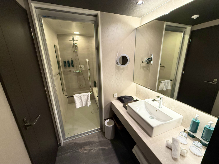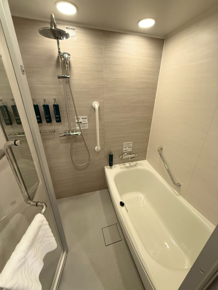 ポイント利用で宿泊。最も安い料金の部屋を予約したのですが、高層階のプレミアムルームにアップグレードいただきました。部屋は少し広めで、通常は追加で約5,500円が必要な客室でした!