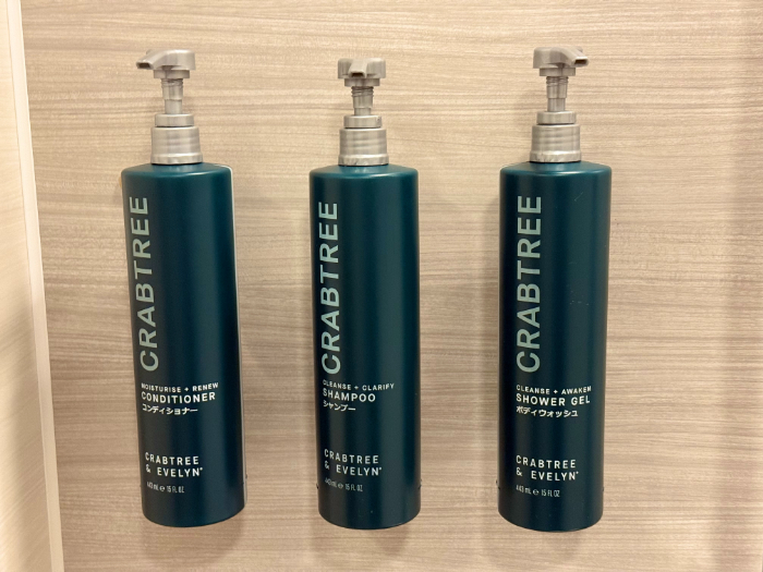 シャンプー類は「クラブツリー」。ヒルトンはいつもこのブランドですね