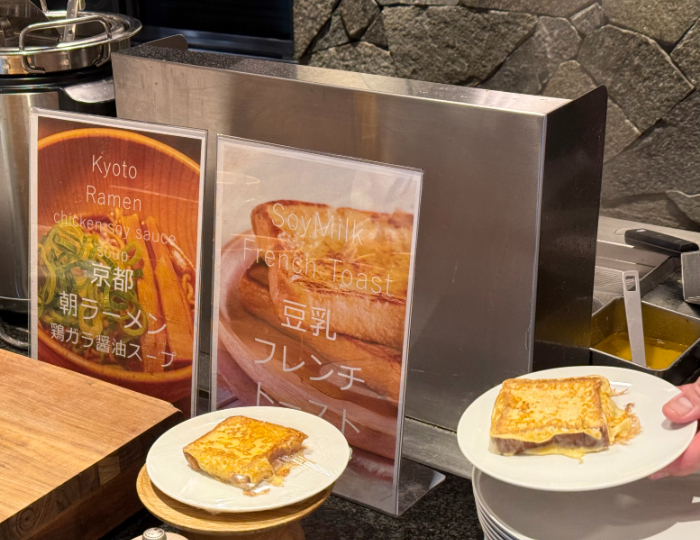 メインダイニングは品数が多く、朝ラーメンやフレンチトーストをいただけます