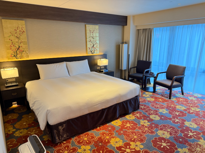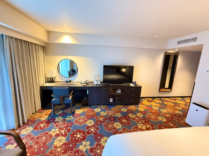 客室は広く、京都らしいデザイン。カーペットは少し派手かな?