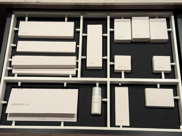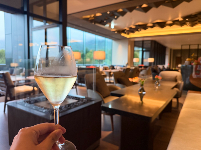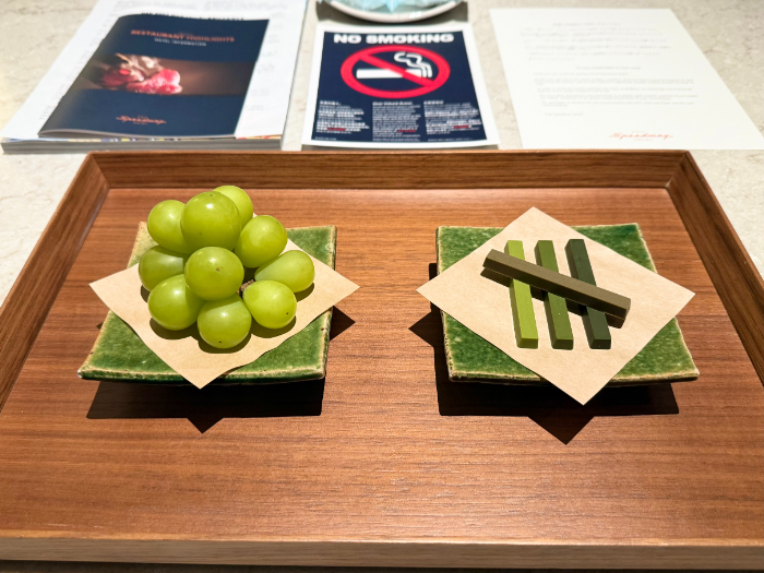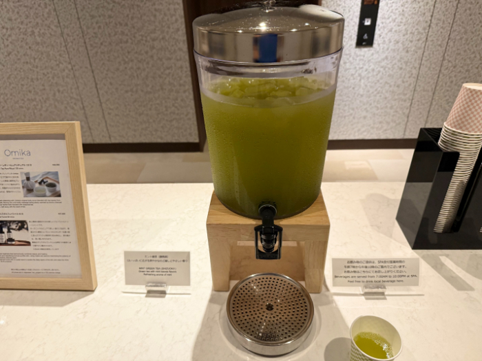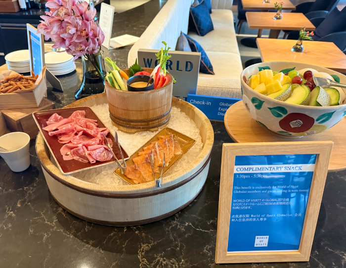 スイートルーム宿泊者とハイアットの最上級会員(グローバリスト)は15:30-17:30の間にウェルカムドリンクをいただけます。チェックインカウンターのすぐ隣にあるレストラン内で、オーダー式です