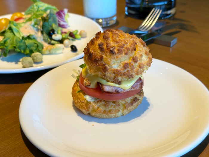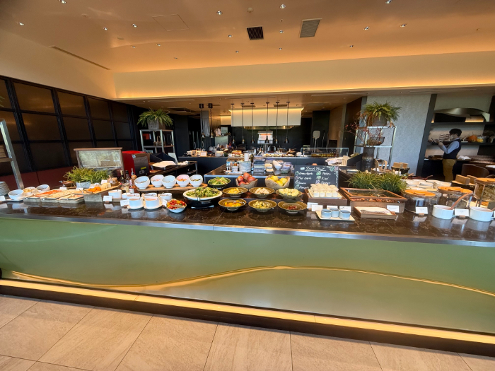 エッグベネディクトは、イングリッシュマフィンではなくシュー生地を使用。オムレツは少しスパイスが効いていて、こだわりを感じます。また、ビュッフェコーナーの品数も多く、大満足の朝食でした!