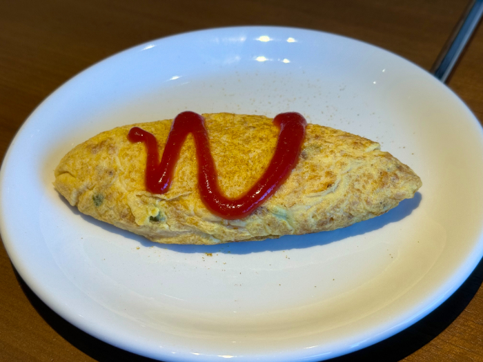 ハーフビュッフェ式で、私はアイスカフェラテ・オムレツを注文しました