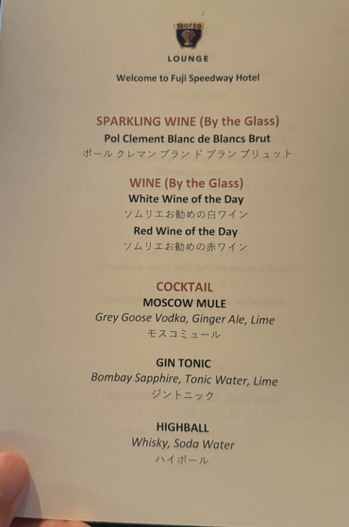 私はスープラ試乗を目的に宿泊したので、始めに紹介します。スイートルームの宿泊者か、普通の客室に宿泊してスパを90分以上利用した場合のみトヨタのスポーツカーなどを公道試乗ができます