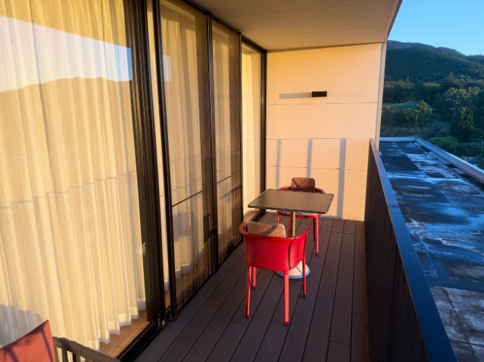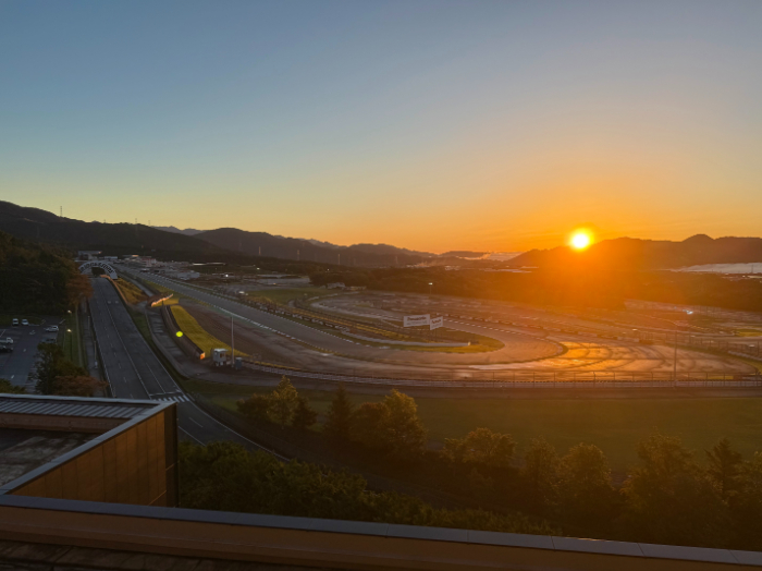 テラス(ベランダ?)がありまして、イスに座りながらサーキットを眺めることができます。スポーツカーの豪快なエンジン音が聞こえます