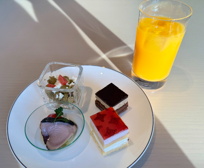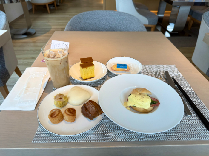 ヒルトンダイヤモンド会員か、エグゼクティブフロアの宿泊者はラウンジでも朝食をいただけます。ラウンジ限定メニューとして、エッグベネディクトや角煮まんじゅうがいただけました