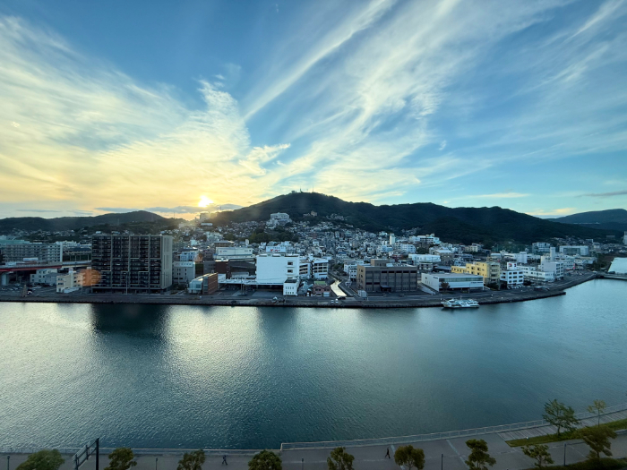 ラウンジからは、日本新三大夜景の1つと言われる「稲佐山」が見えます