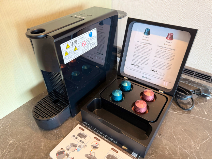 ネスプレッソは4つ。いろはす2本は無料でいただけました