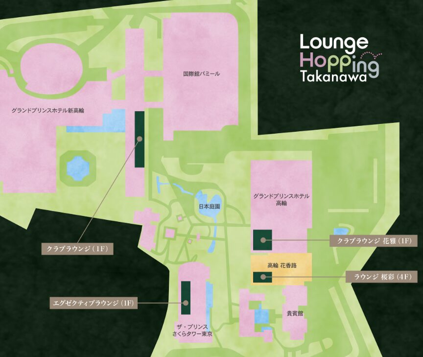 4か所のホテルは、すべて西部プリンスホテルのグループ。そのため、宿泊客はラウンジを相互利用することができます。ただし、ラウンジ桜彩だけは、SLH花香路の宿泊者限定となっています