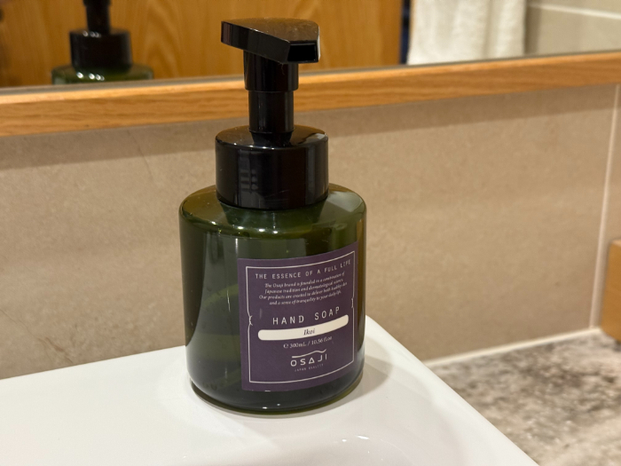 シャンプー類はオサジというブランド。3,000円/本くらいします