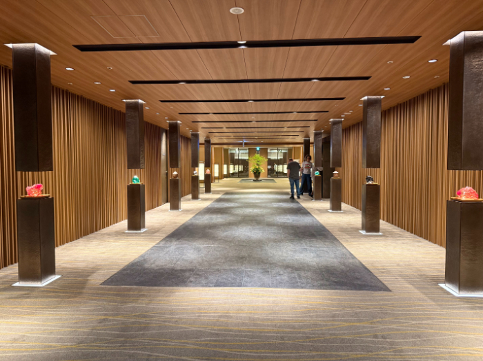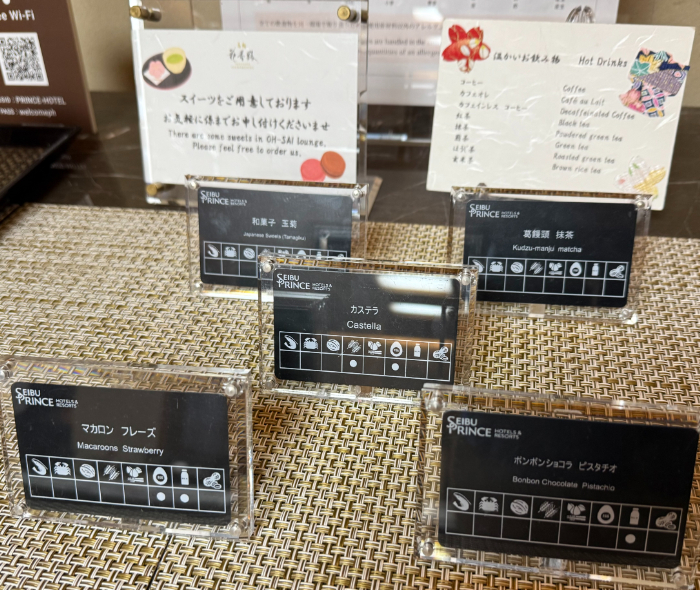 花香路は4階のラウンジでチェックイン。しかし、エレベーターにセキュリティがかかっているため、スタッフさんの案内が無いと行けません。1階にいるグランドプリンス高輪のチェックインカウンターに行くと、スタッフさんが案内してくれます