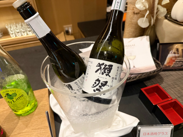 アルコール類も高級なものが揃っています。シャンパン・ワインは5,000円/本くらい、日本酒の獺祭は最高級の磨き2割3分。これも5,000円/本くらいします